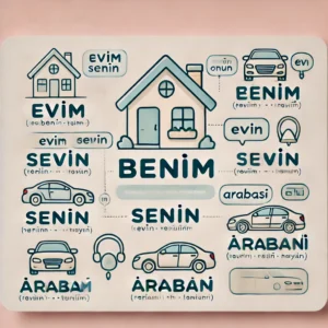 | Ben (I) | Ev (house) | Evim (my house) | -im is added because ev ends with a consonant. A vowel (-i-) is used for easier pronunciation. |